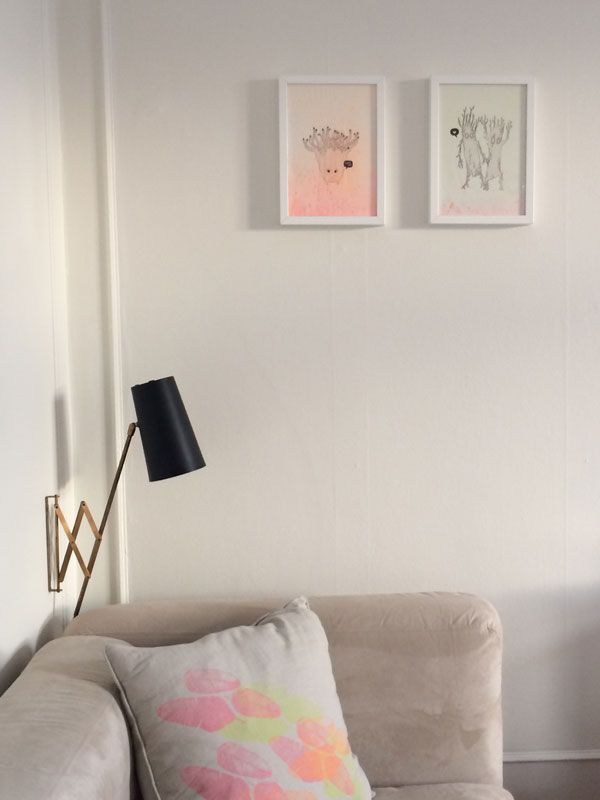 Behind this is Danish designer and artist Louise Haugaard Nielsen. Her drawings and prints are minimalistic, have a great color scheme and often have a patchwork-y touch, as if they were composed of different materials. Some are very geometric in shape, others are more playful and freely designed. They can be found on Louise’s website (www.amileinthewoods.dk) or on Facebook, and some can be bought at Danish furniture store chain Ilva.